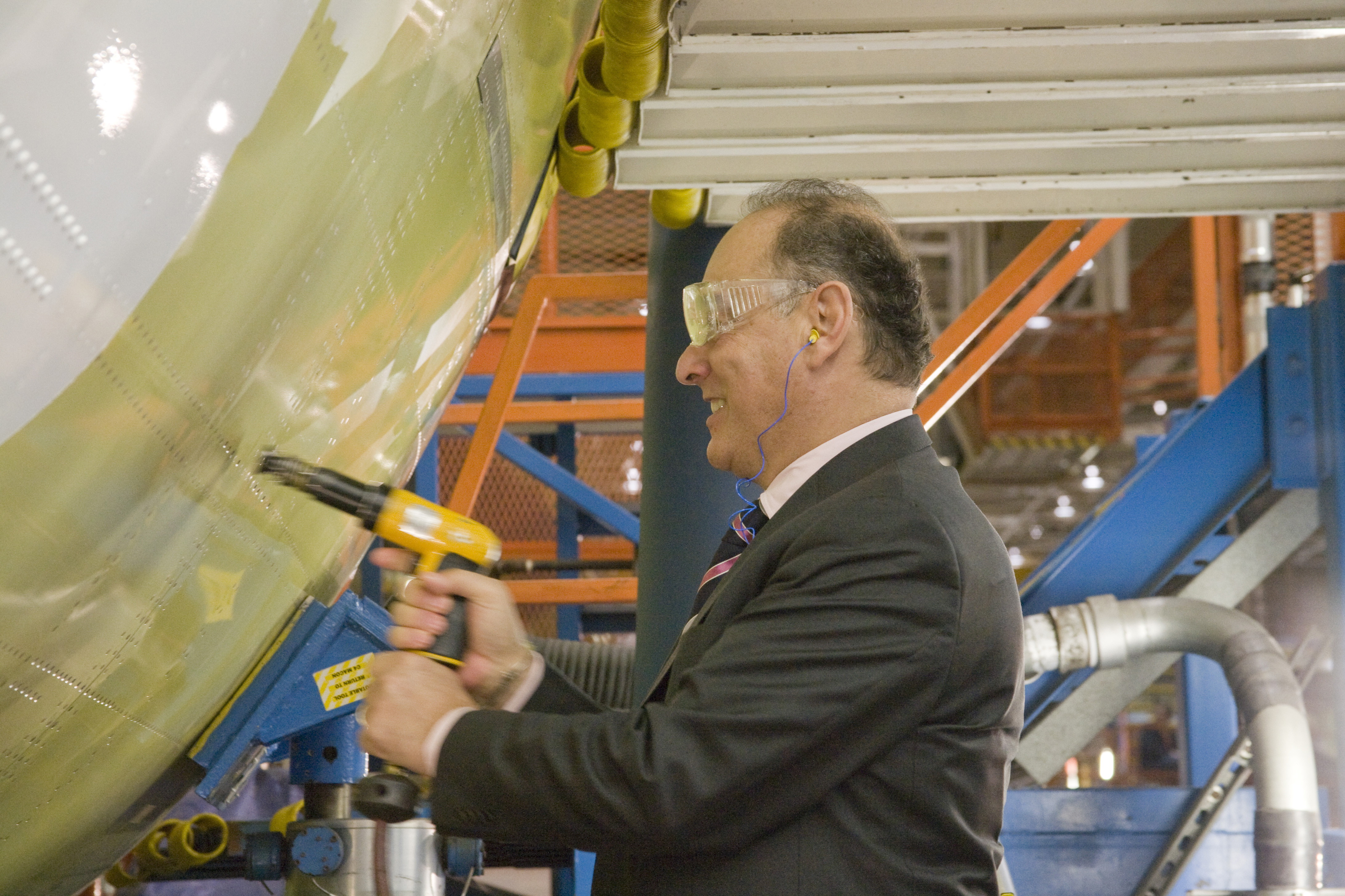 During major join, the C-17 airlifter's four major sections -- the forward, center and aft fuselages and wing assembly -- are integrated, and the aircraft begins to look like a C-17 for the first time. Hundreds of C-17 employees looked on as senior members of SAC and representatives of the government of the Republic of Hungary, NATO, and Boeing drove ceremonial rivets into the aircraft's fuselage.