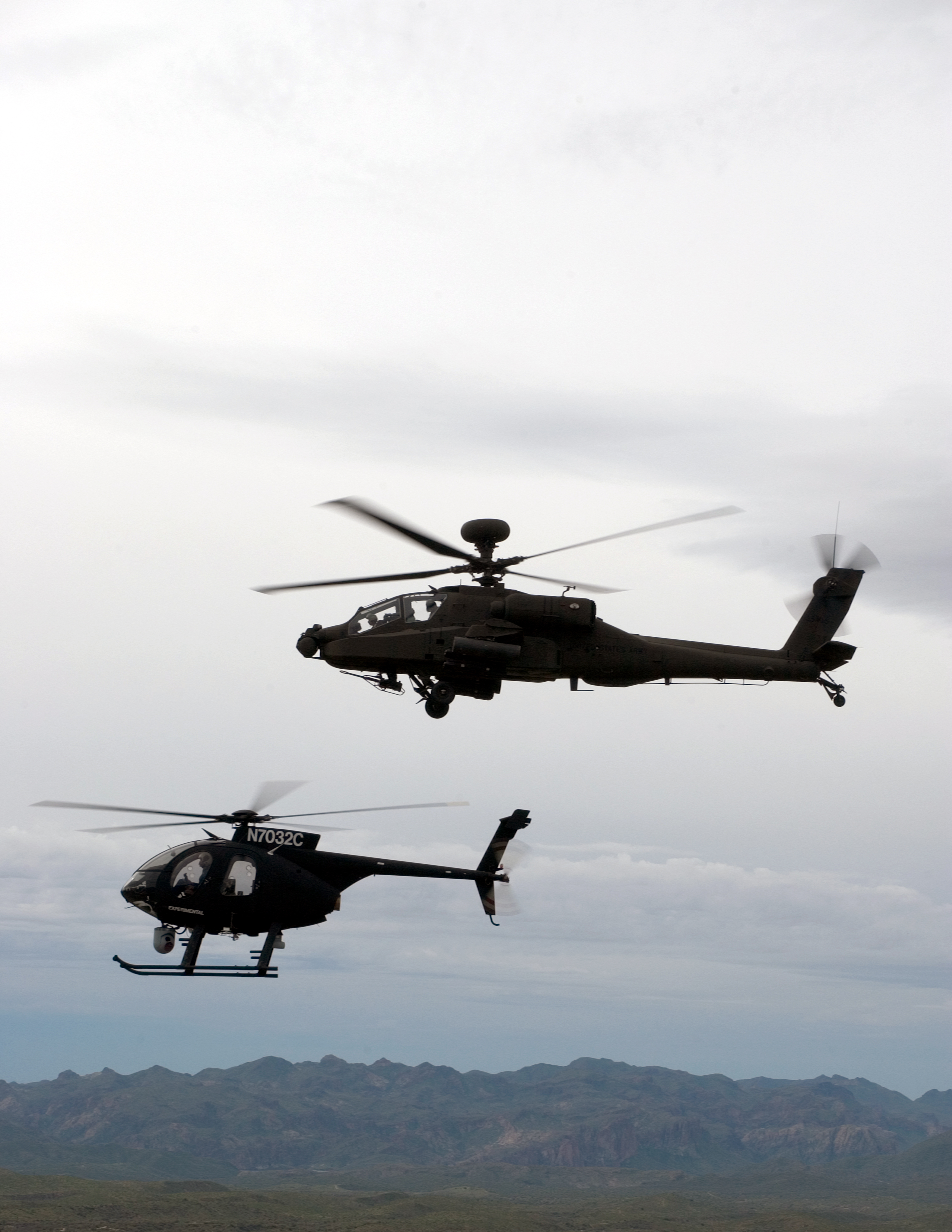 For this demonstration, Boeing, under Army direction, used a Boeing AH-6 helicopter as a surrogate for Sky Warrior, the Extended Range/Multi-Purpose UAS that is not yet available.