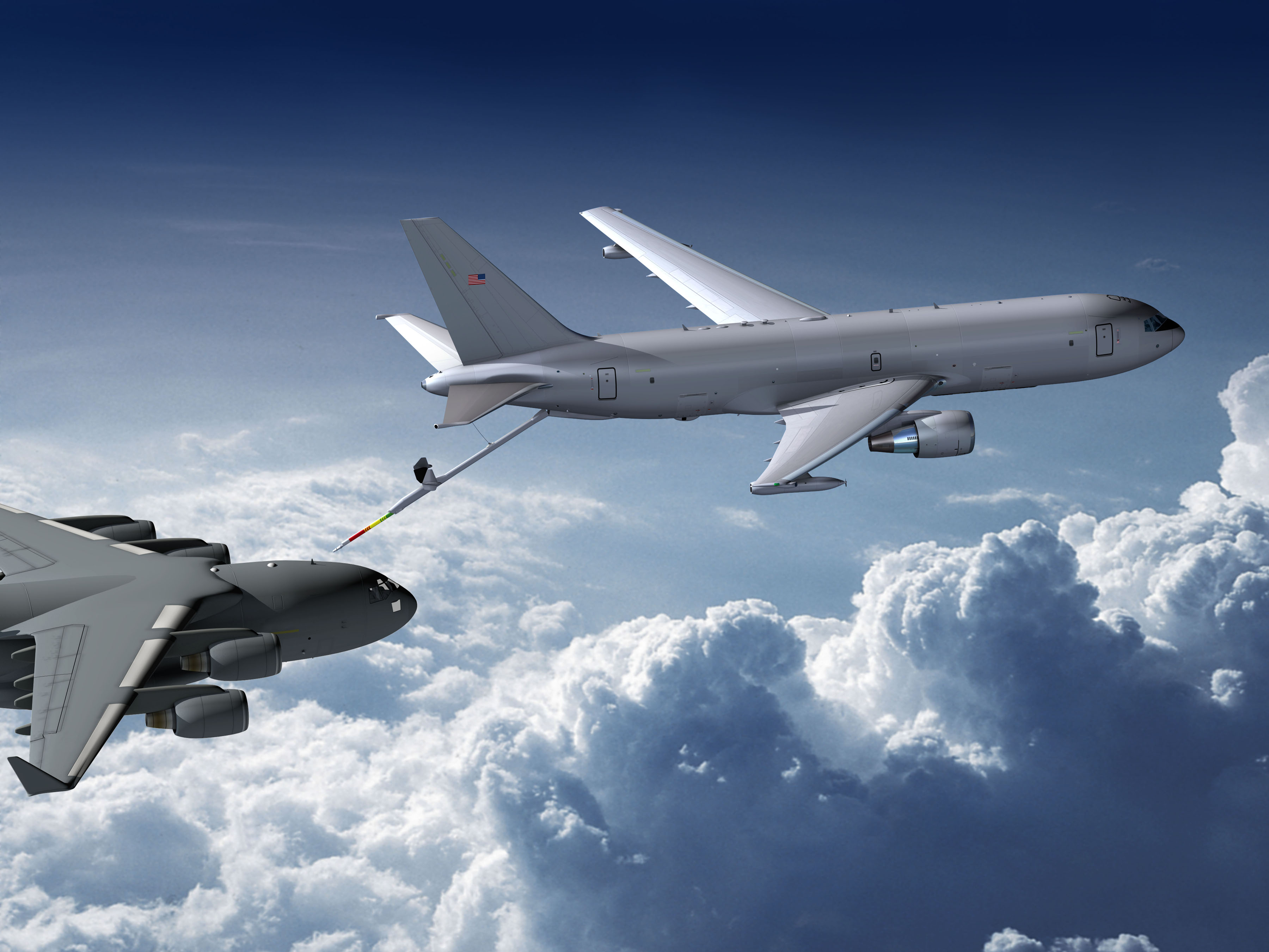 Boeing will build 179 next-generation aerial refueling tanker aircraft that will begin to replace the Air Force's fleet of 416 KC-135 tankers. Based on the proven Boeing 767 commercial airplane, the KC-46A tanker is a widebody, multi-mission aircraft updated with the latest and most advanced technology to meet the demanding mission requirements of the future, including a digital flight deck featuring Boeing 787 Dreamliner electronic displays and a flight control design philosophy that places aircrews in command to maximize combat maneuverability. The KC-46A also features a modernized KC-10 boom with a fly-by-wire control system, and a refueling envelope and fuel offload rate that is greater than that of the KC-135 it will replace.