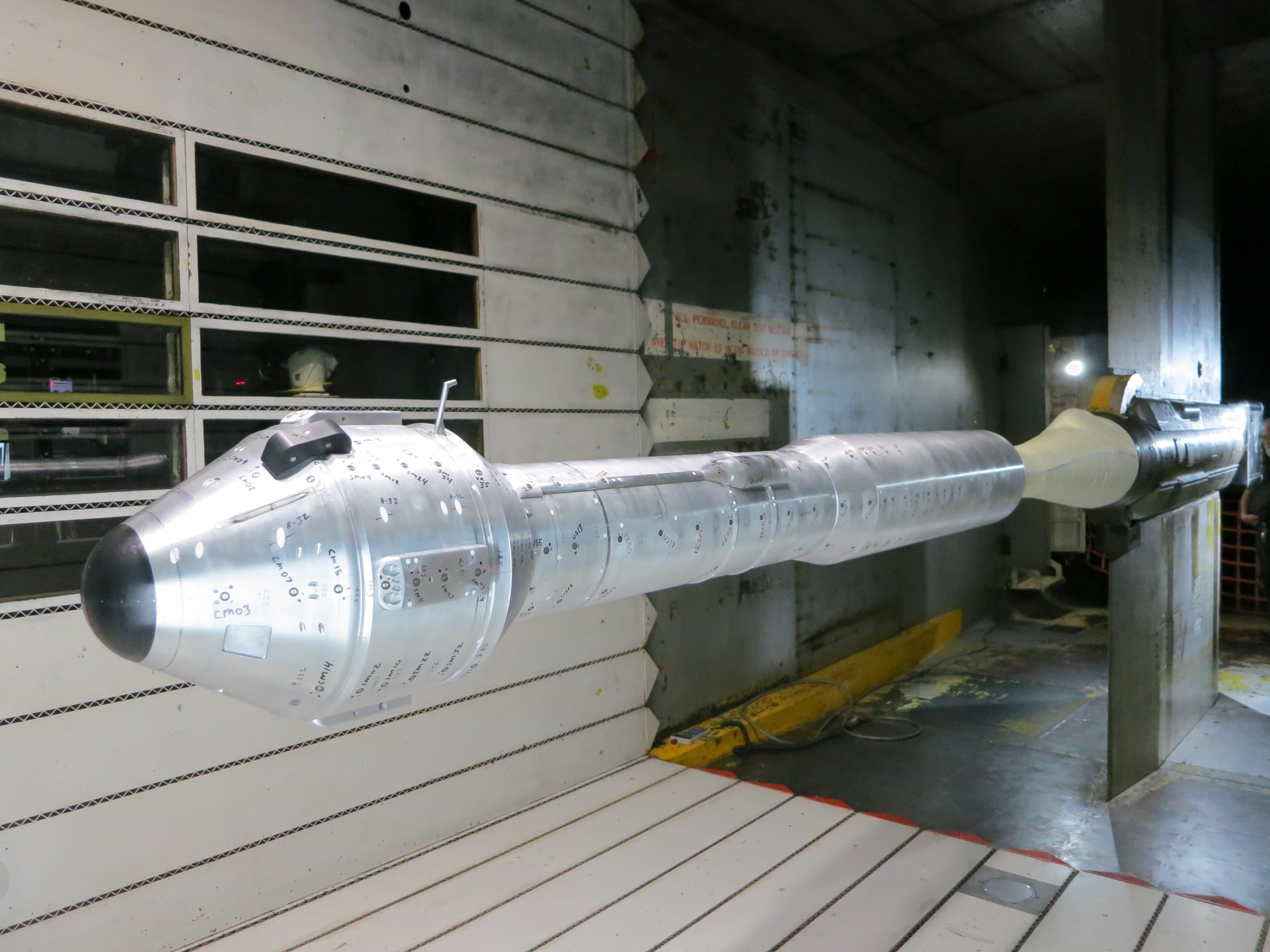 The wind tunnel test, at NASA’s Ames Research Center in California, allowed for evaluation of the proposed launch configuration.