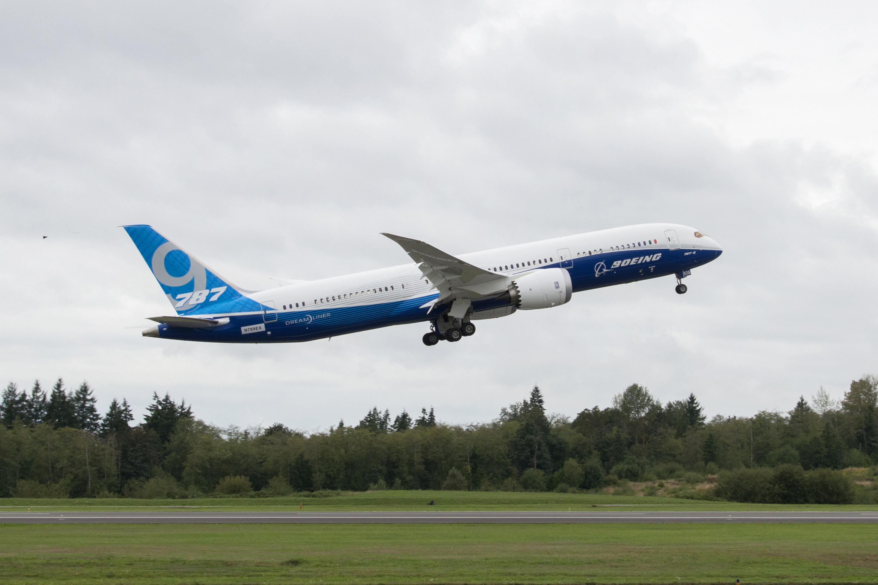 With its distinctive new Boeing livery, the newest member of the efficient 787 family completed a 5-hour, 16-minute flight, taking off from Paine Field in Everett, Wash., at 11:02 a.m. local time and landing at 4:18 p.m. at Seattle's Boeing Field.