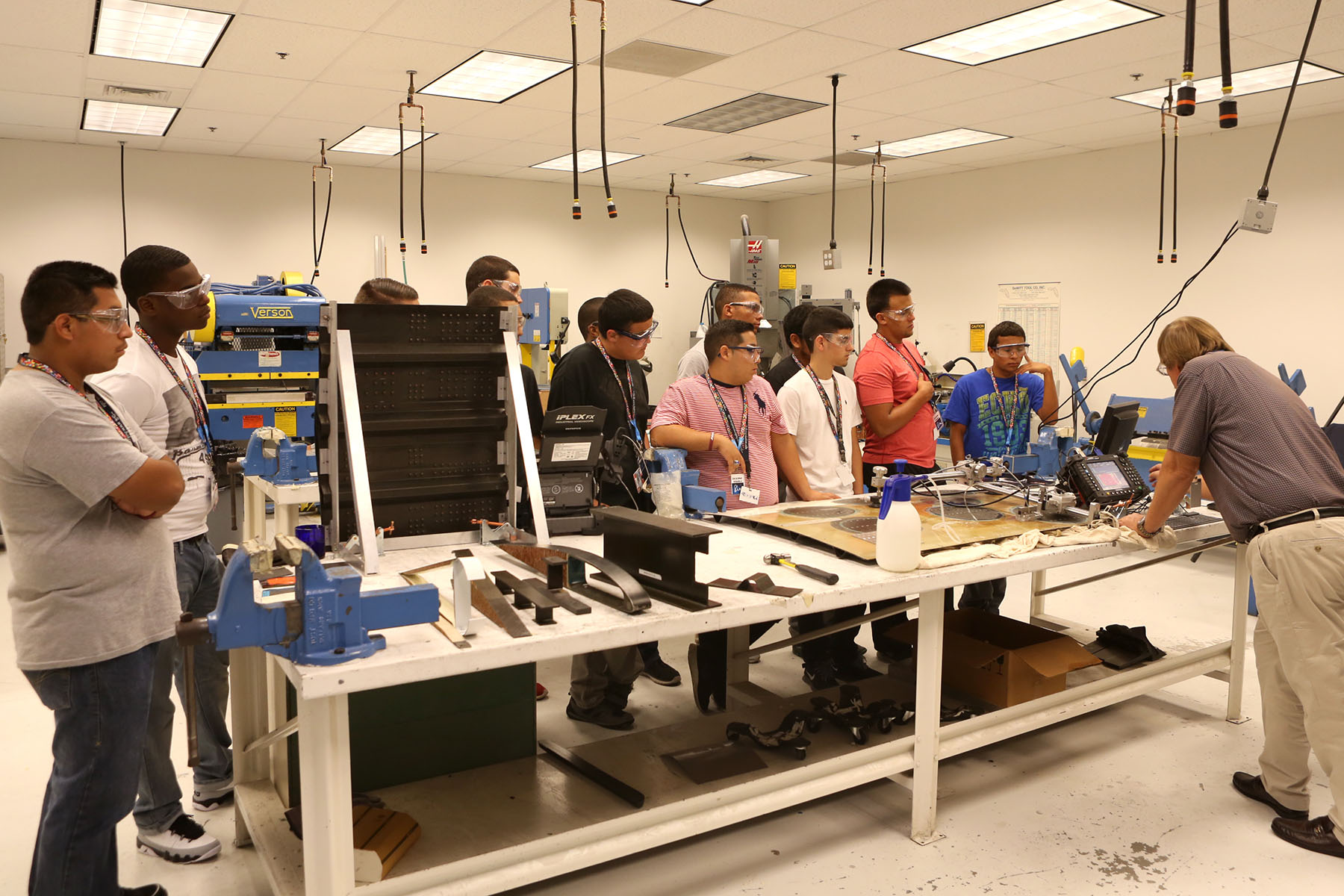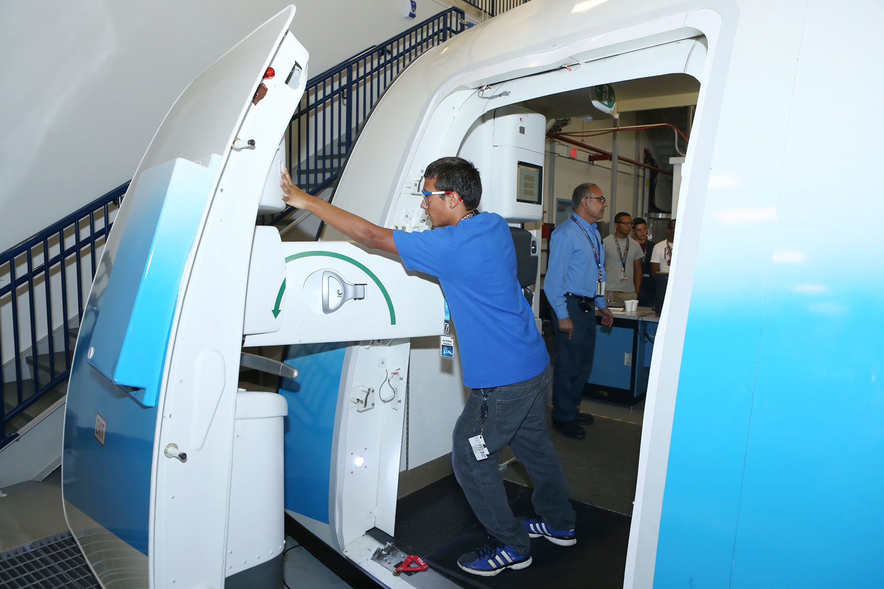 Students had the opportunity to tour Boeing’s largest training campus with experts who provided hands-on experiences with a 787 maintenance training suite, a full-flight simulator, a flat-panel trainer, cabin crew door trainers as well as a structures workshop.