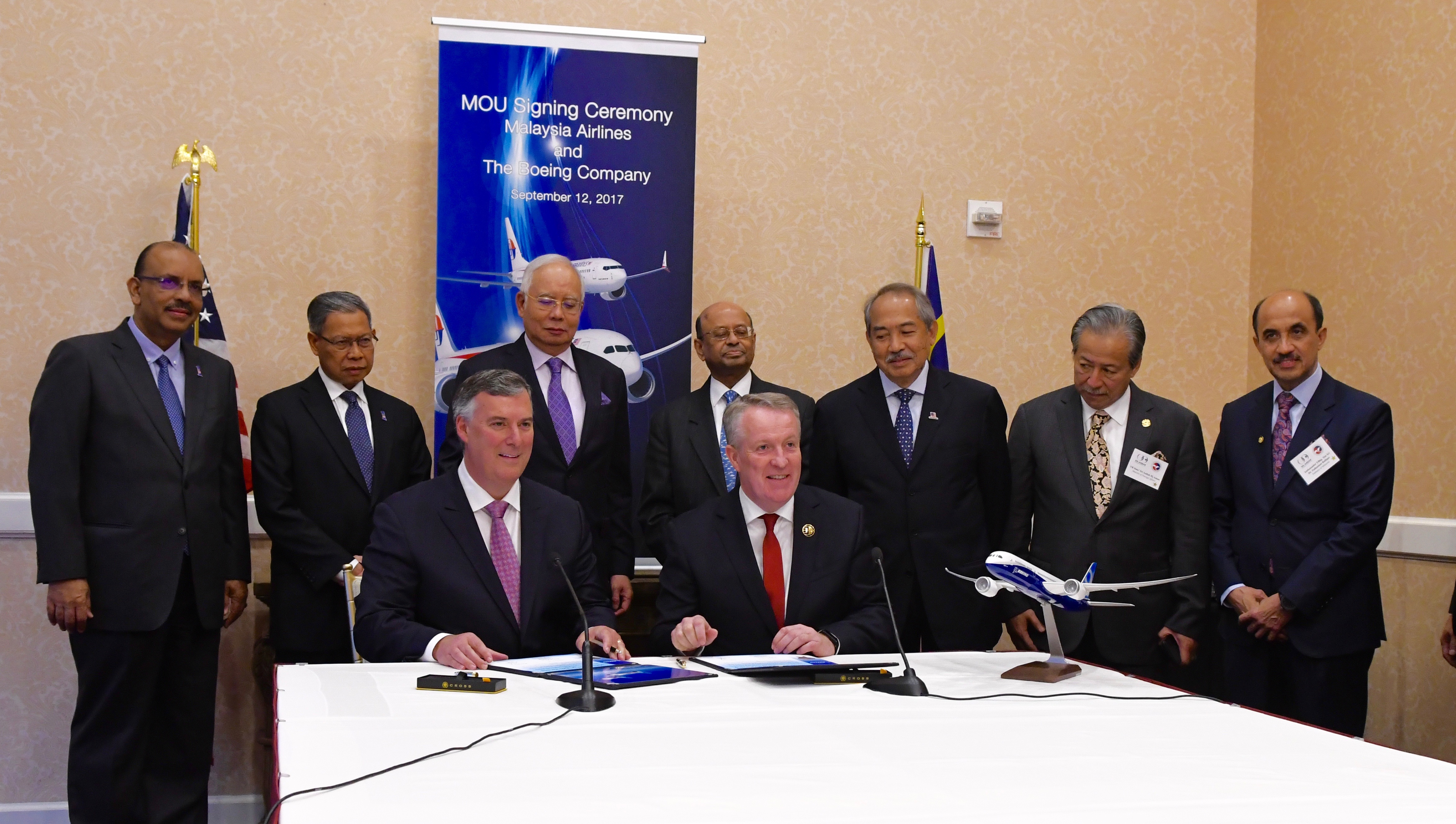 WASHINGTON, Sept. 12, 2017 /PRNewswire/ -- Boeing [NYSE: BA] and Malaysia Airlines Berhad (Malaysia Airlines) today signed a Memorandum of Understanding for 16 airplanes during a ceremony at the St. Regis Hotel in Washington D.C.