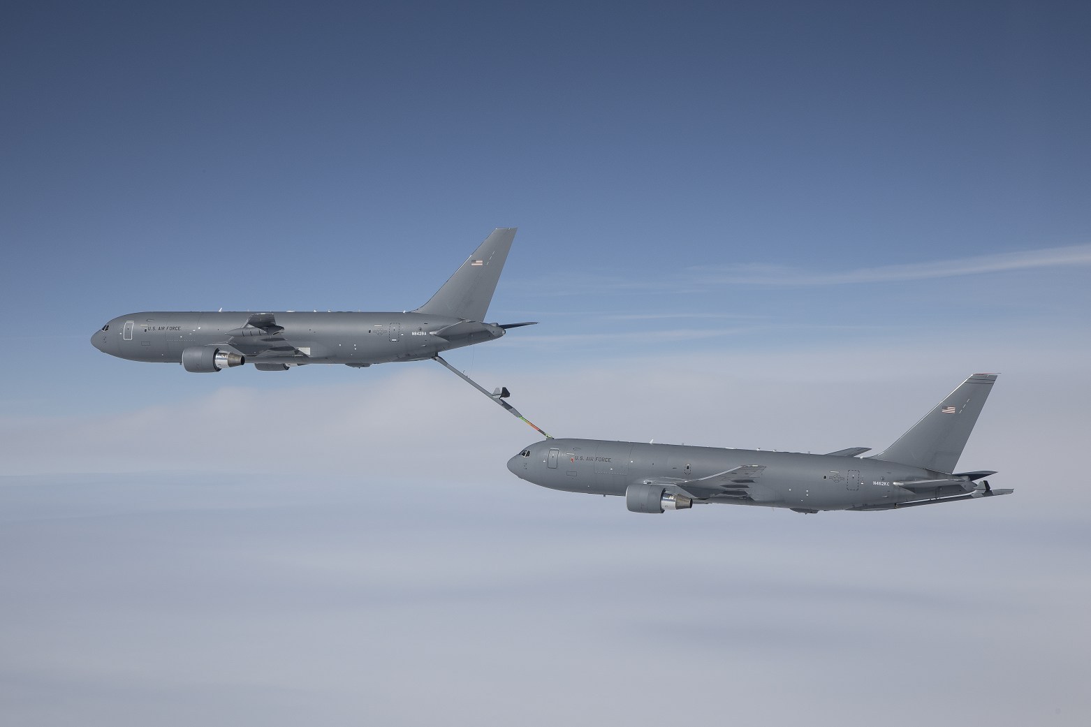 During the three-hour, forty-eight minute flight, a KC-46 successfully transferred 146,000 pounds of fuel to a second KC-46, while achieving the maximum fuel off-load rate of 1,200 gallons per minute. Both aircraft took off and landed at Boeing Field, south of Seattle.