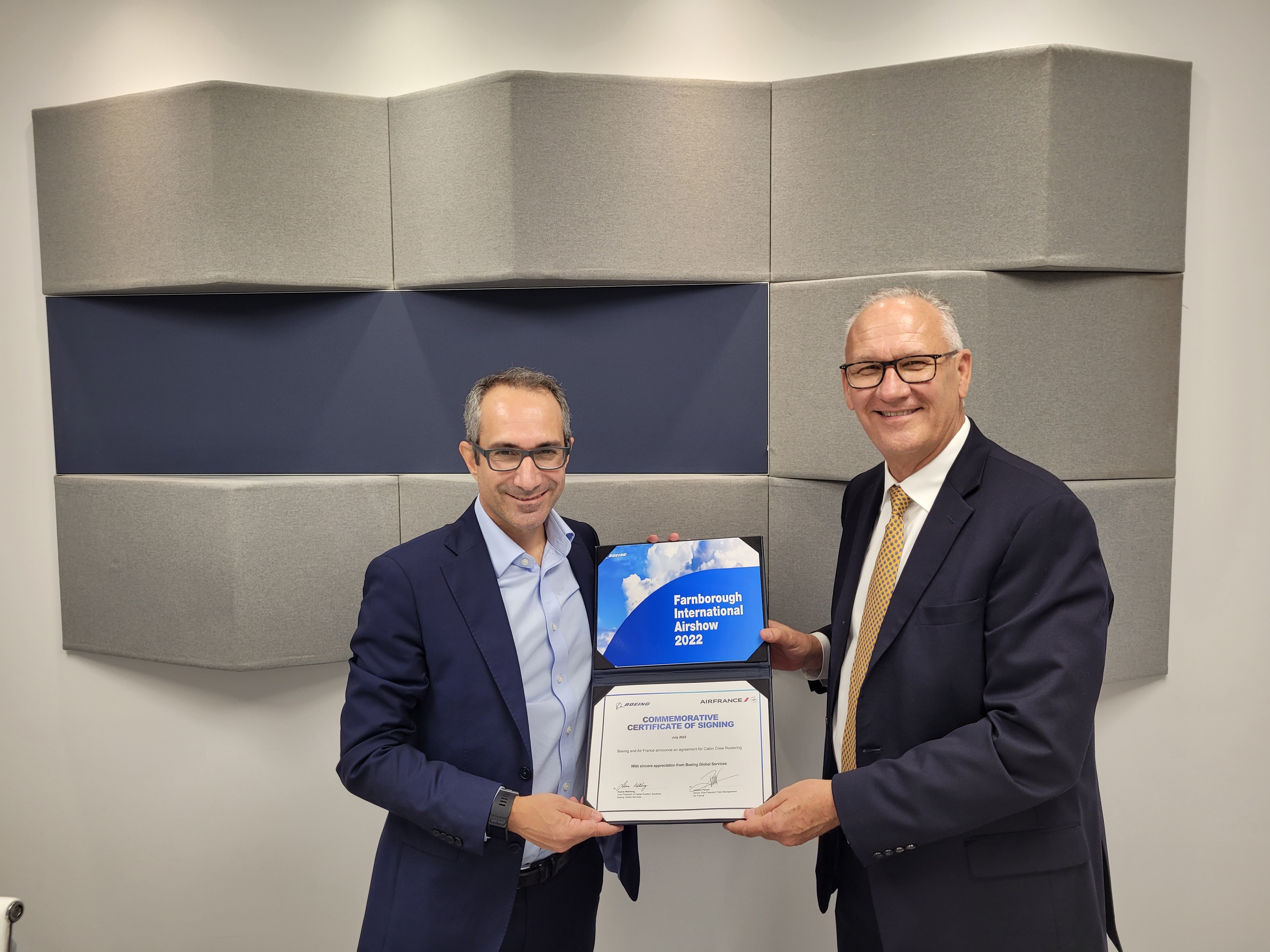 FARNBOROUGH, United Kingdom, July 20, 2022 — Air France has selected Boeing’s (NYSE: BA) Jeppesen Crew Rostering solution to optimize crew schedules for the nearly 13,000 cabin crew at the airline, as part of a five-year contract signed at the Farnborough Airshow.