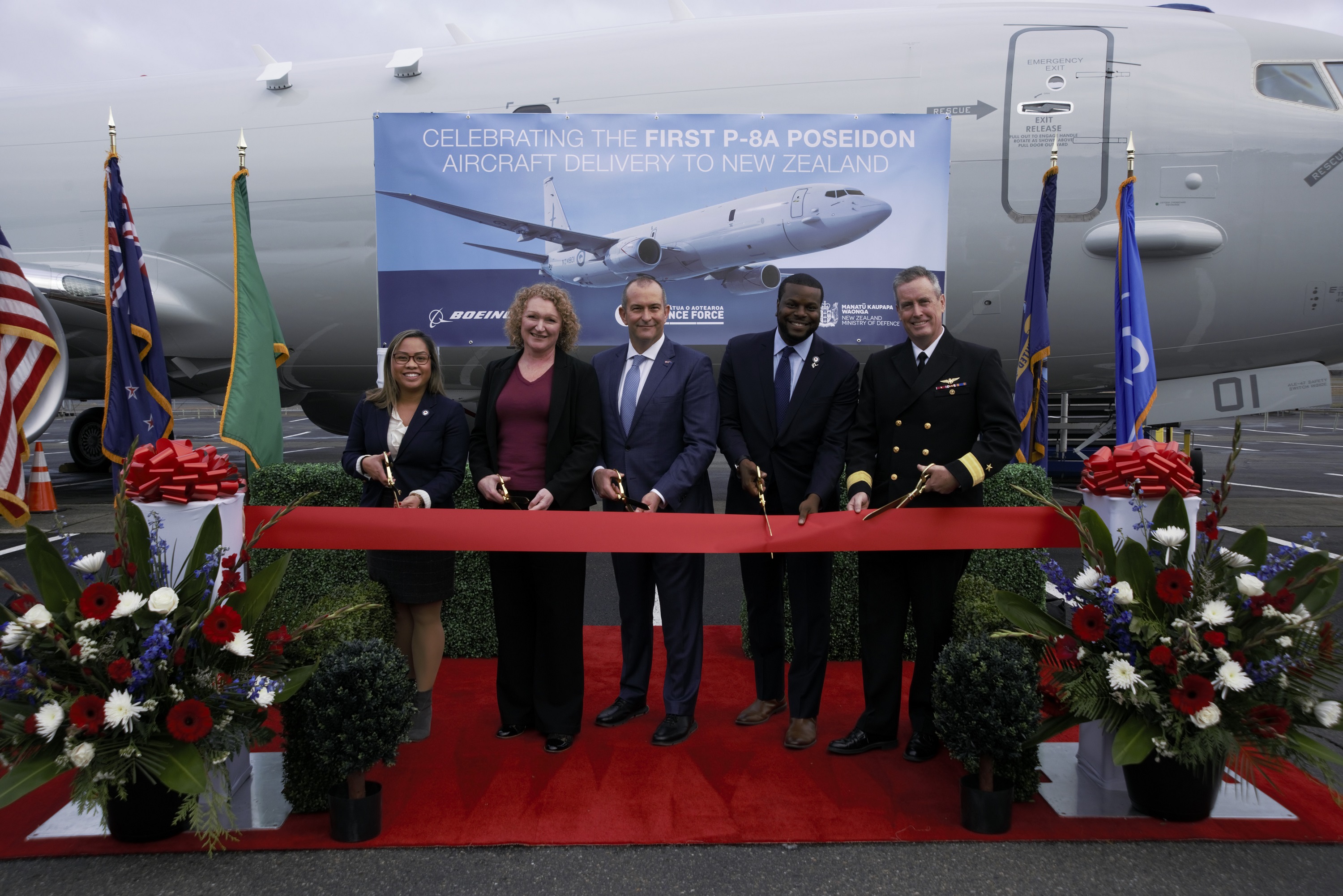 SEATTLE, Dec. 7, 2022—New Zealand today received the first of four Boeing [NYSE: BA] P-8A Poseidon maritime patrol aircraft in a ceremony at the Museum of Flight.