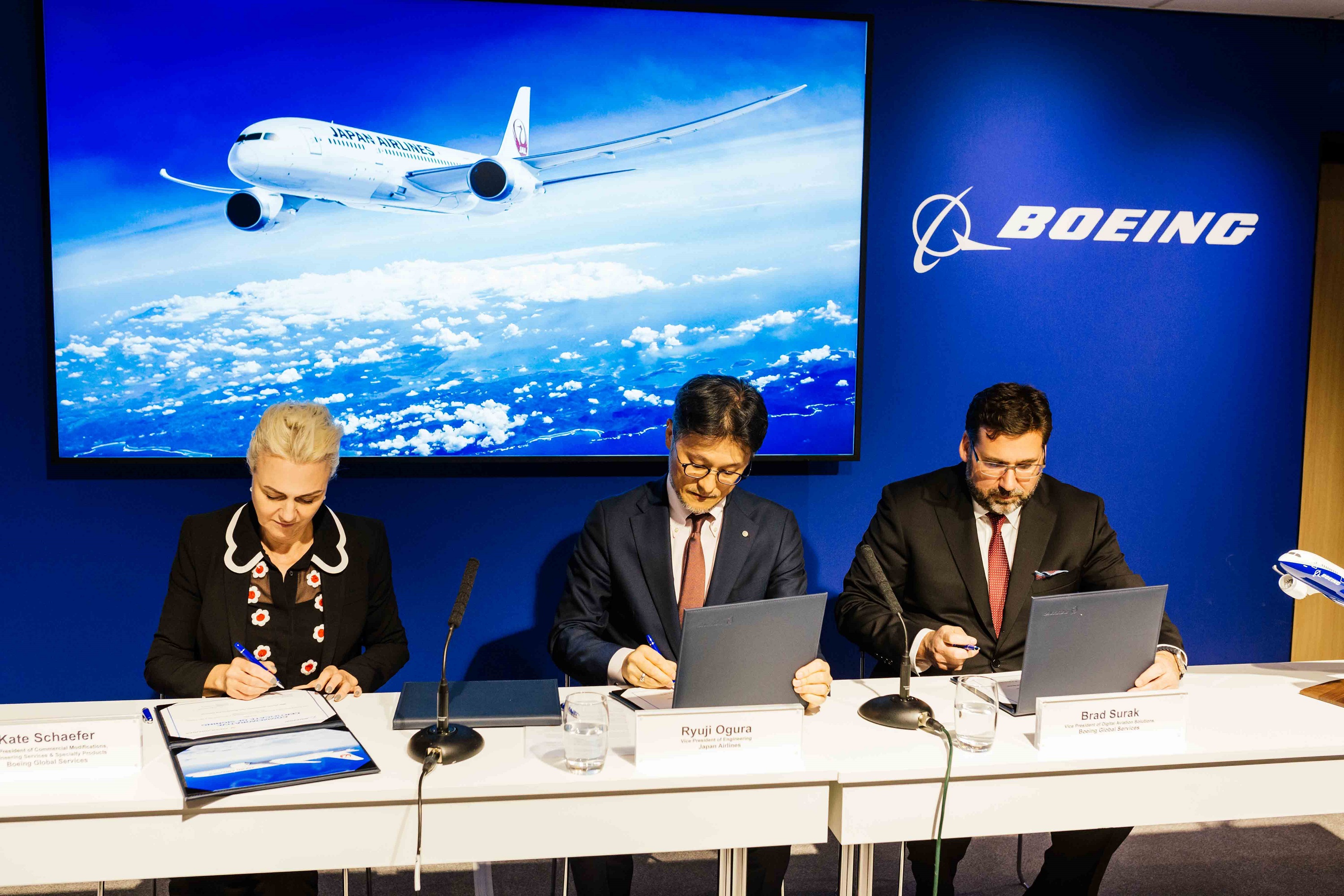 LE BOURGET, France, June 20, 2023— Boeing [NYSE:BA] and Japan Airlines (JAL) announced agreements that will improve the passenger experience including a digital predictive maintenance solution JAL helped develop and extensive interior modifications for a portion of JAL’s 787 Dreamliner fleet.